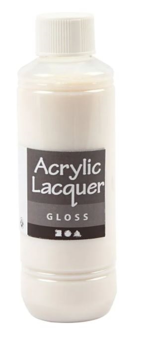 Vandbaseret akryllak i rigtig god kvalitet til beskyttelse af overflader af træ, pap og emner malet med vandbaseret maling m.m.. Tørrer transparent og vandskyende op.