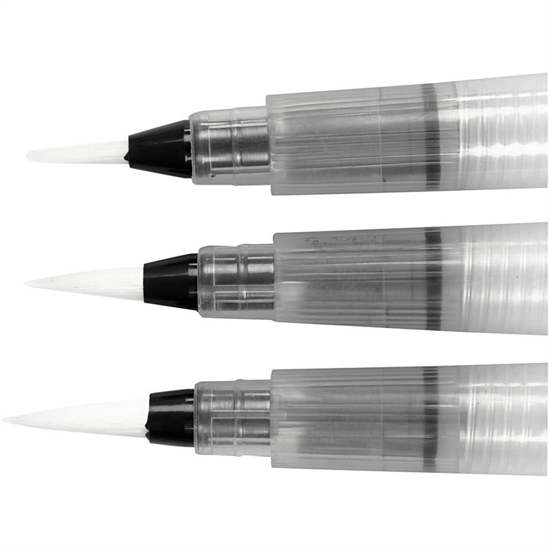 Runde pensler med fine nylonhår og hult skaft af plast til vand.
