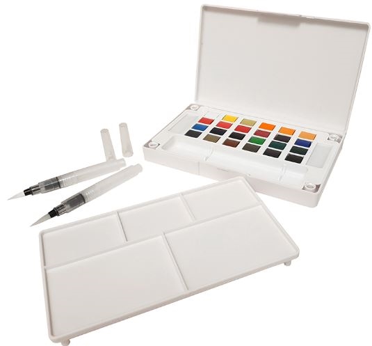 Akvarelmaling er en hyggelig aktivitet, både inde og ude. For at hjælpe dig i gang har vi sammensat dette sæt.  Det giver dig meget for pengene og består af: