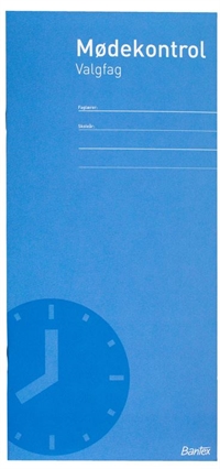 Mødekontrolbog til 6 valgfag, 28 elever pr. side, blanketter til rapportering af forsømmelser mv.