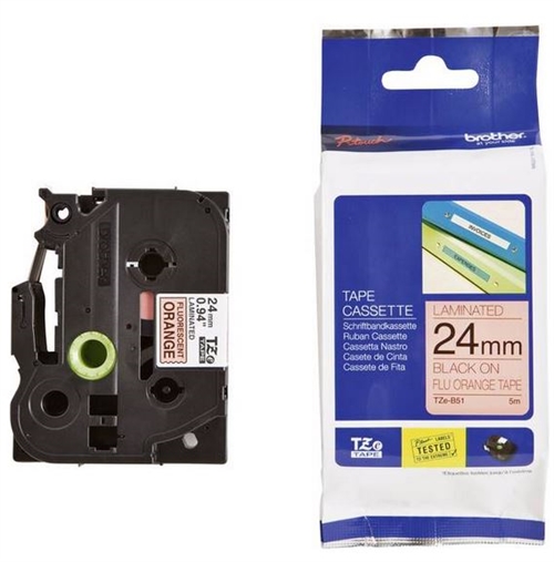 Brother TZe-B51 - sort tekst på neon orange tape, 24mm, TZB51