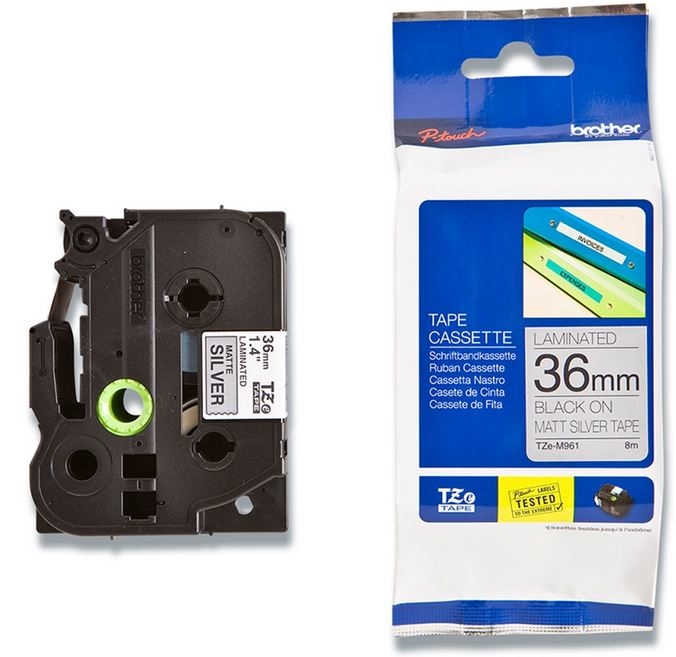 Brother TZe-M961, 36mm, sort tekst på sølv/mat tape