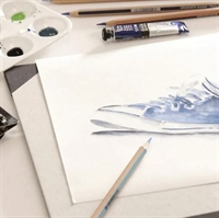 Papir på 300 g/m²: Papirets gramvægt giver stor modstandsdygtighed og gør det muligt at påføre flere lag akvarel uden at papiret deformeres.