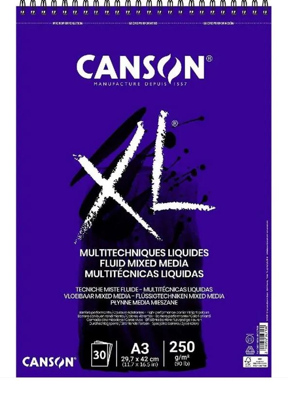 Canson XL Fluid Mixed Media A3 250g smooth - 30 ark