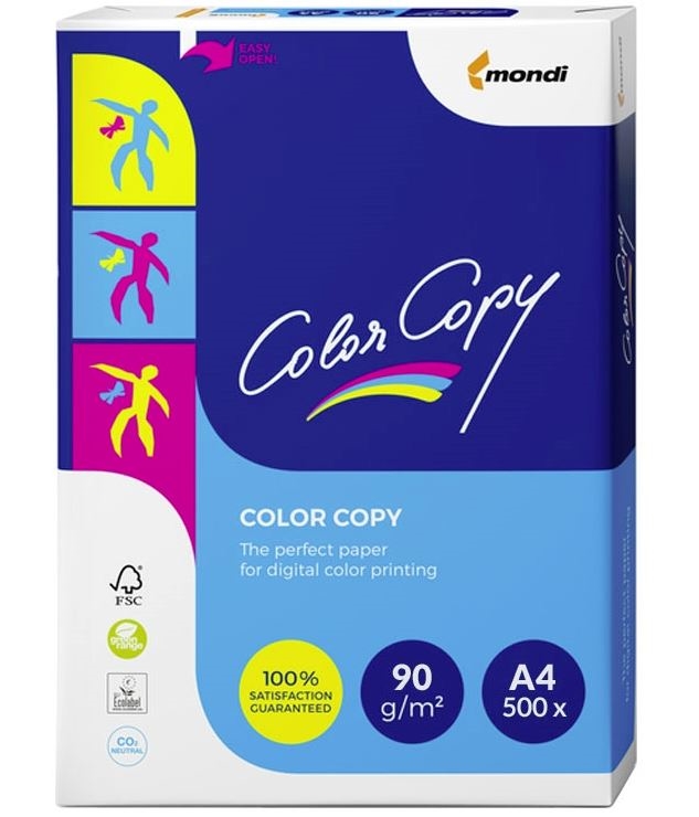 Color Copy er træfrit, hvidt, ubestrøget papir til farvelaserprint, med en ekstra glat overflade.