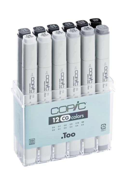 COPIC marker sæt Cool Grey med 12 stk. leveres i plastdisplay
