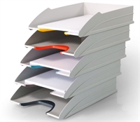 De 5 brevbakker i dette sæt kan stables lige oven på hinanden eller let forskudt for at give endnu bedre adgang til de nederste bakker.