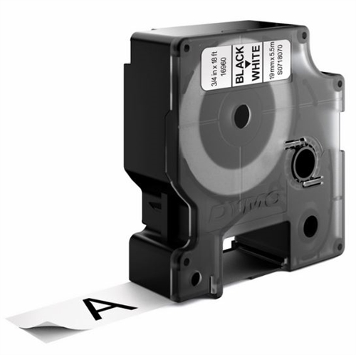 Dymo D1 Labeltape permanent polyester - 19mm. x 3,5m - sort på hvid