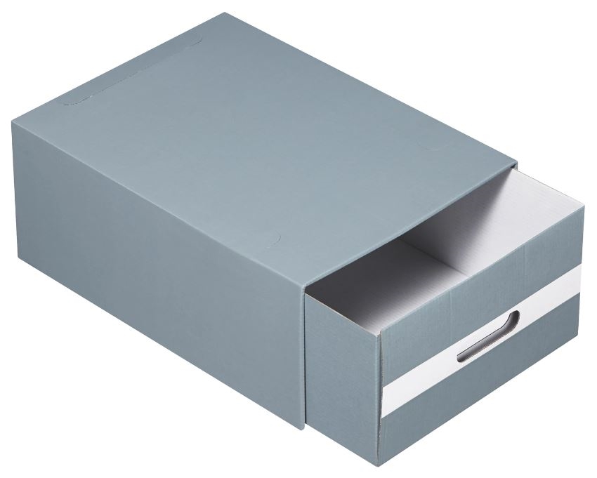 Esselte Maxibox Standard kartonbox med skuffe, grå, B:260 x H:140 x D:350mm