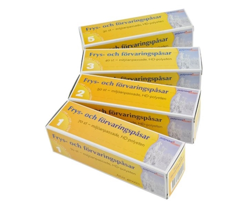 3 liters fryseposer i god kraftig kvalitet, HDPE med 40 poser per rulle.