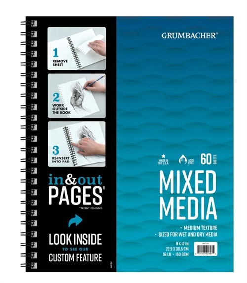 Grumbacher Mixed Media Pad er den ideelle løsning for kunstnere, kunststuderende, lærere og hobbymalere, der søger et papir af høj kvalitet til forskellige tegneteknikker og maleteknikker. Med en papirvægt på 160 g/m², en hvid, syrefri overflade og praktisk spiralbinding er denne mixed media-blok perfekt til skitser, illustrationer, akvarel, tuschtegninger, tuscher, blyant, kul, gouache og meget mere.