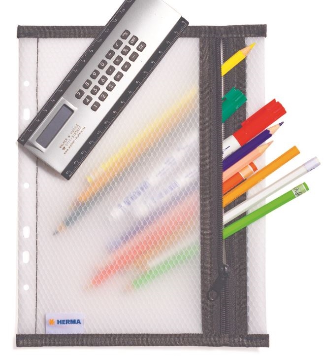 HERMA lynlåslomme til mapper i sort A5-format med lynlås og euro-perforforering kan arkiveres i mapper eller ringbind og giver plads til alt det, der skal arkiveres, men som ikke kan perforeres. CD'er, DVD'er, kuglepenne, markere, lommeregnere, opladerkabler, salgssedler og kvitteringer opbevares sikkert og pænt. Den robuste, netforstærkede, gennemsigtige folie giver et klart overblik over indholdet og yder perfekt beskyttelse mod snavs, snavs og fugt. Materialet er særligt slidstærkt og slidstærkt.