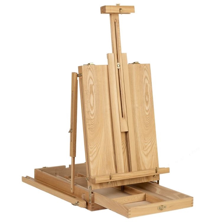Praktisk staffeli, kombineret med malerkasse. Meget pladsbesparende og let at transportere. Et alt-i-et staffeli.
