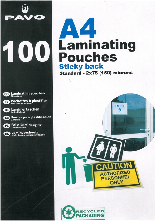 lamineringslomme selvklæbende A4 Blank Sticky Back, 75my. 100/pk.