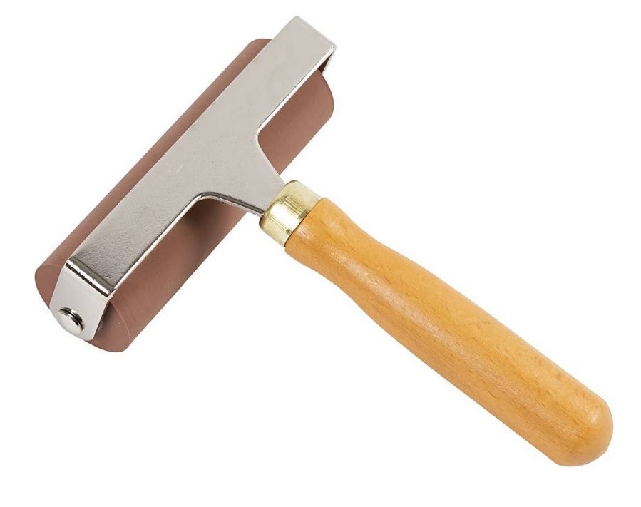 Linoleumsulle/gummivalse - 10 cm - rødbrun valse og træhåndtag