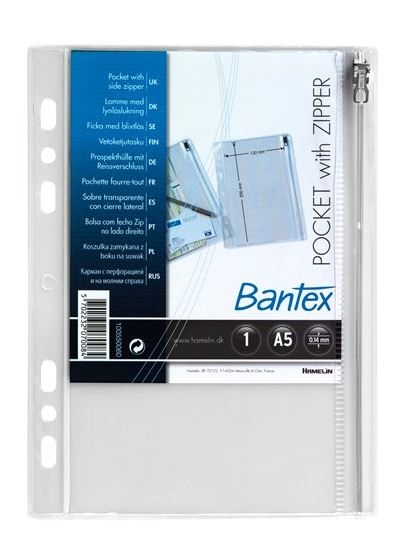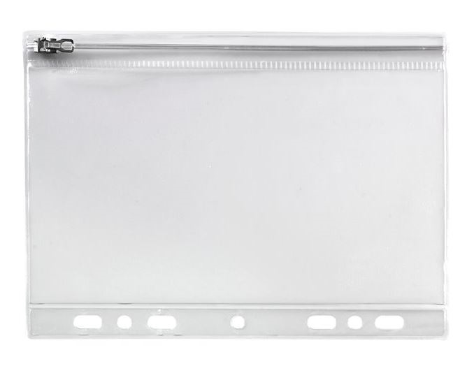 Lynlåslomme til isætning i ringbind og lynlås, påsvejset i højre side.