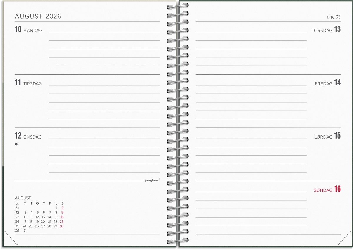 Mayland A6 ugekalender tværformat tekstilpræg 2026 nr. 26201210