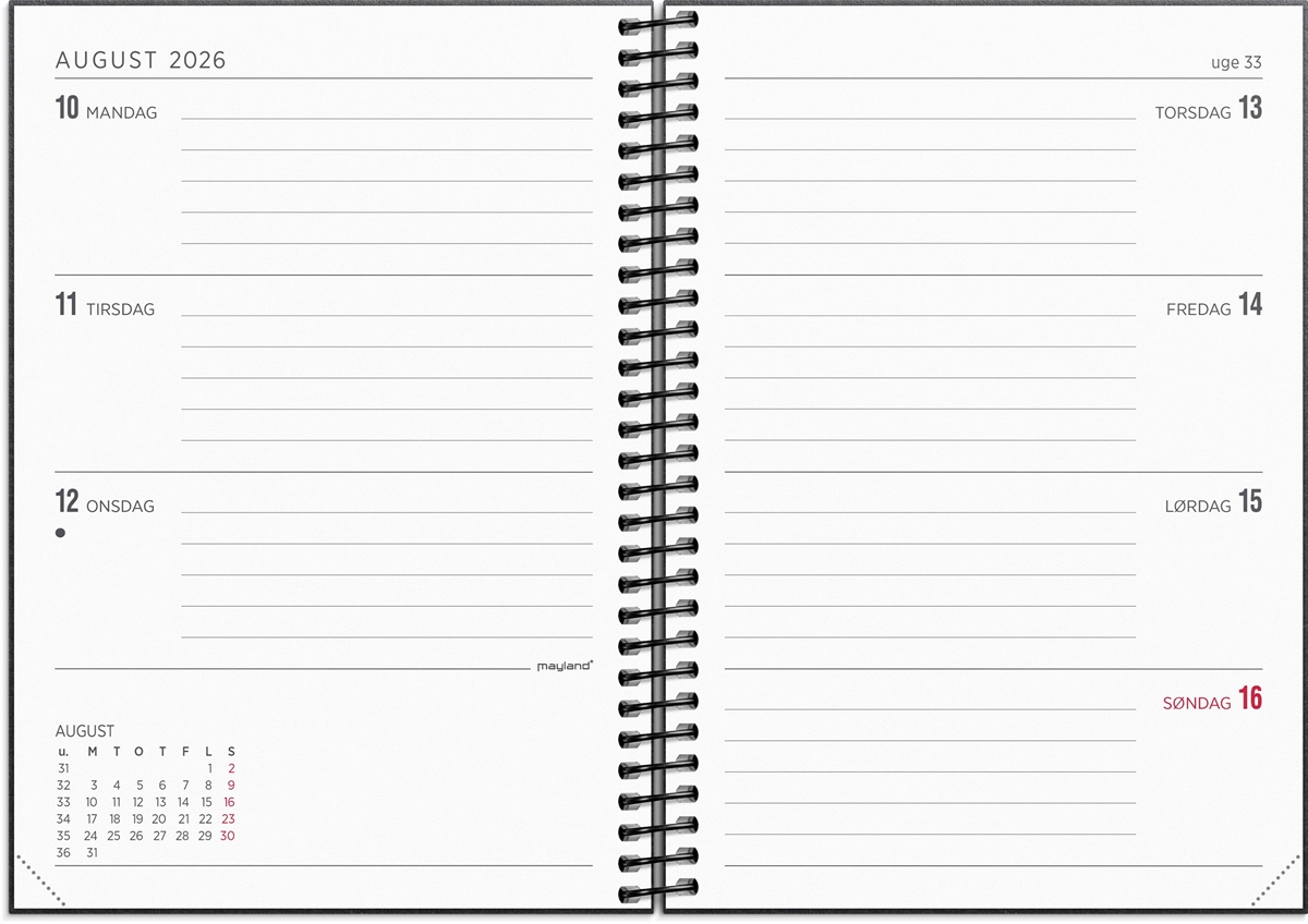 Mayland A6 ugekalender tværformat matsort genbrugskarton 2026 nr. 26201220
