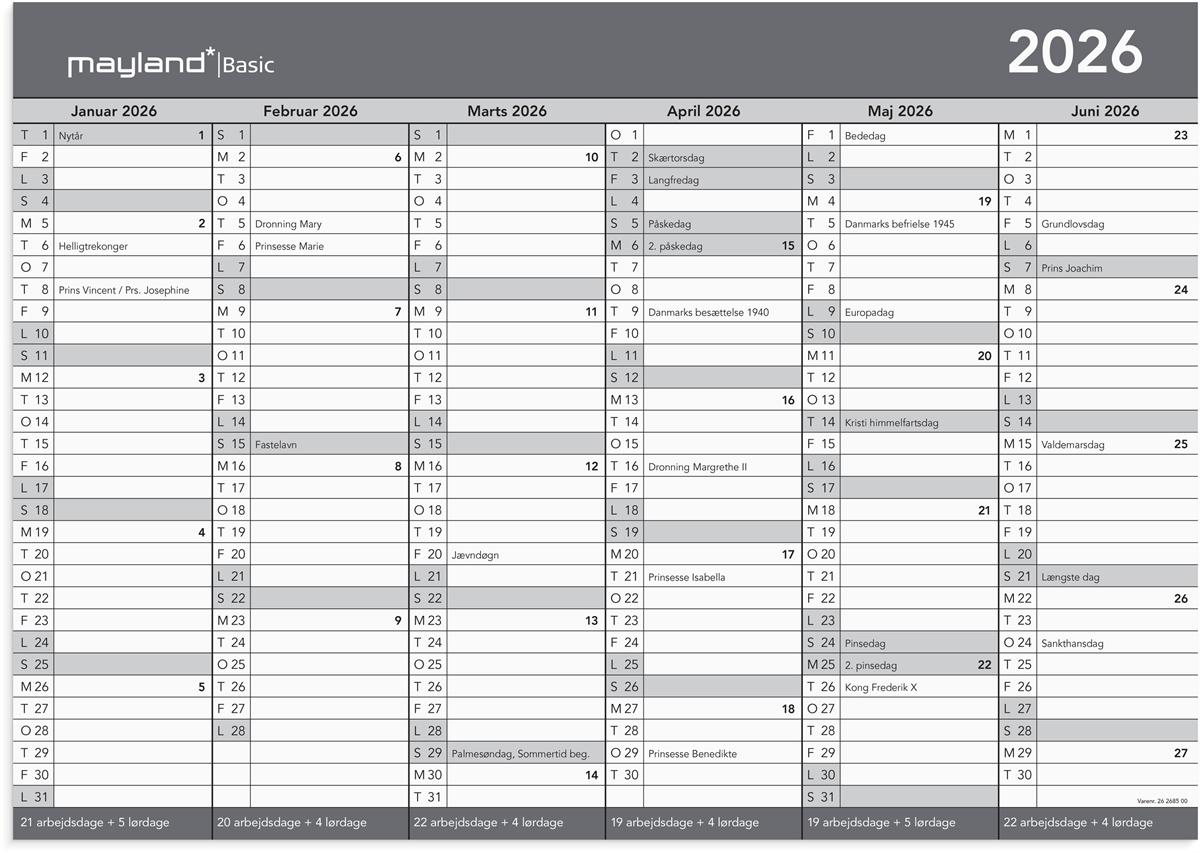 Mayland Basic kontorkalender A3 2026 nr. 26268500