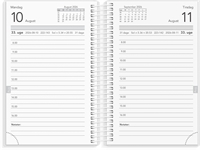 Simpel mini dagskalender i et enkelt design. Kalenderen er spiralbundet med et omslag i PP-plast og har en grå forside med årstal. Basiskalenderen er inddelt med en dag pr. side og indeholder et timeopdelt kalenderskema fra kl. 8-16, så du nemt kan overskue dagens planer og aktiviteter. Dertil finder du plads til dagens noter nederst på hver side, en månedsoversigt ved hver måneds start samt afrivningshjørner, så du hurtigt og nemt kan slå op på dagens side.