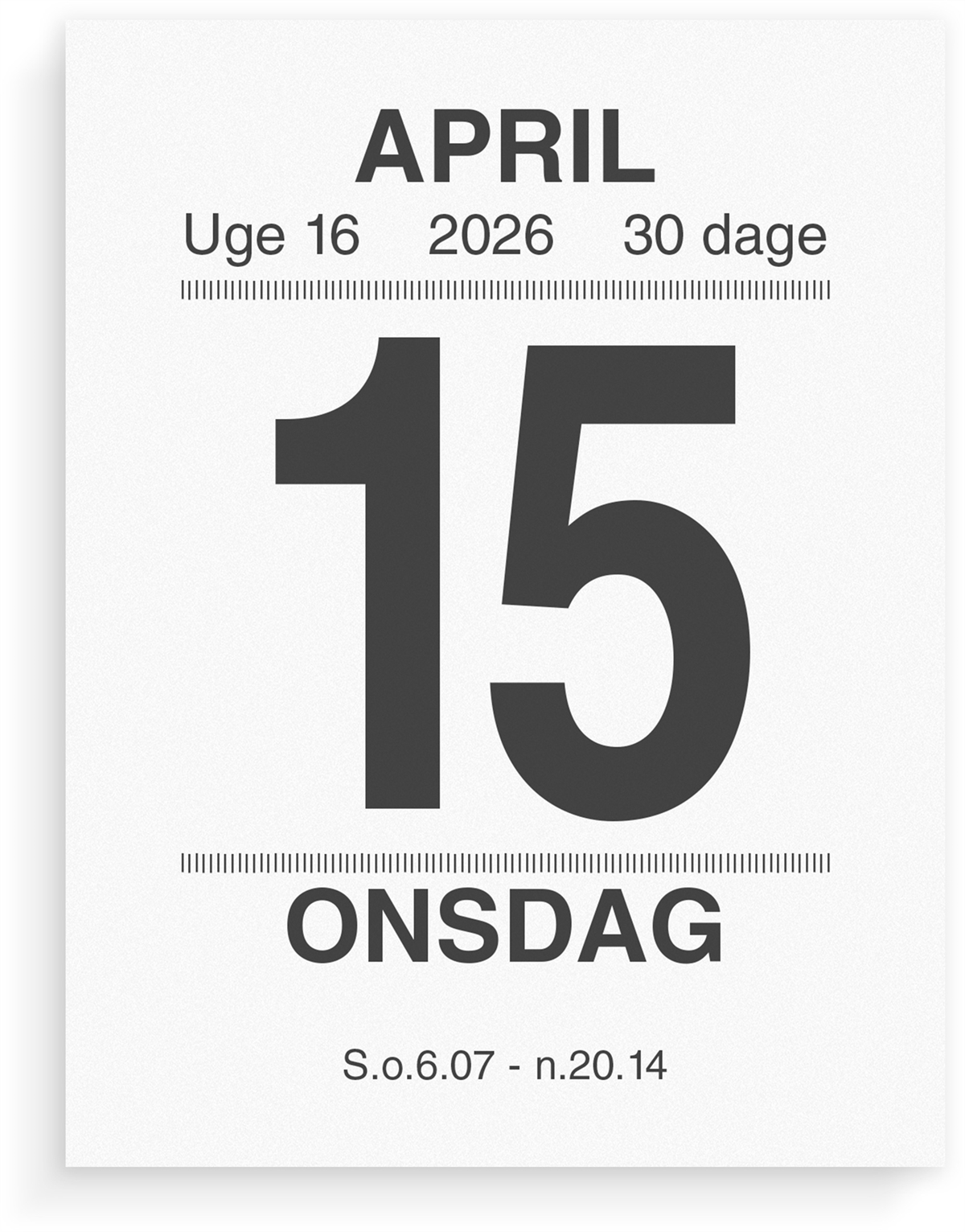 Lille broderikalender til vægophæng. Den smarte, lille broderikalender har en split, så den kan monteres på en valgfri bagbeklædning. Dertil har kalenderen et praktisk blokformat, hvor hver side nemt kan rives af blokken, når dagen er gået. Afrivningskalenderen har et enkelt og moderne design og har bagsidetekster og et ugentligt krydsord.