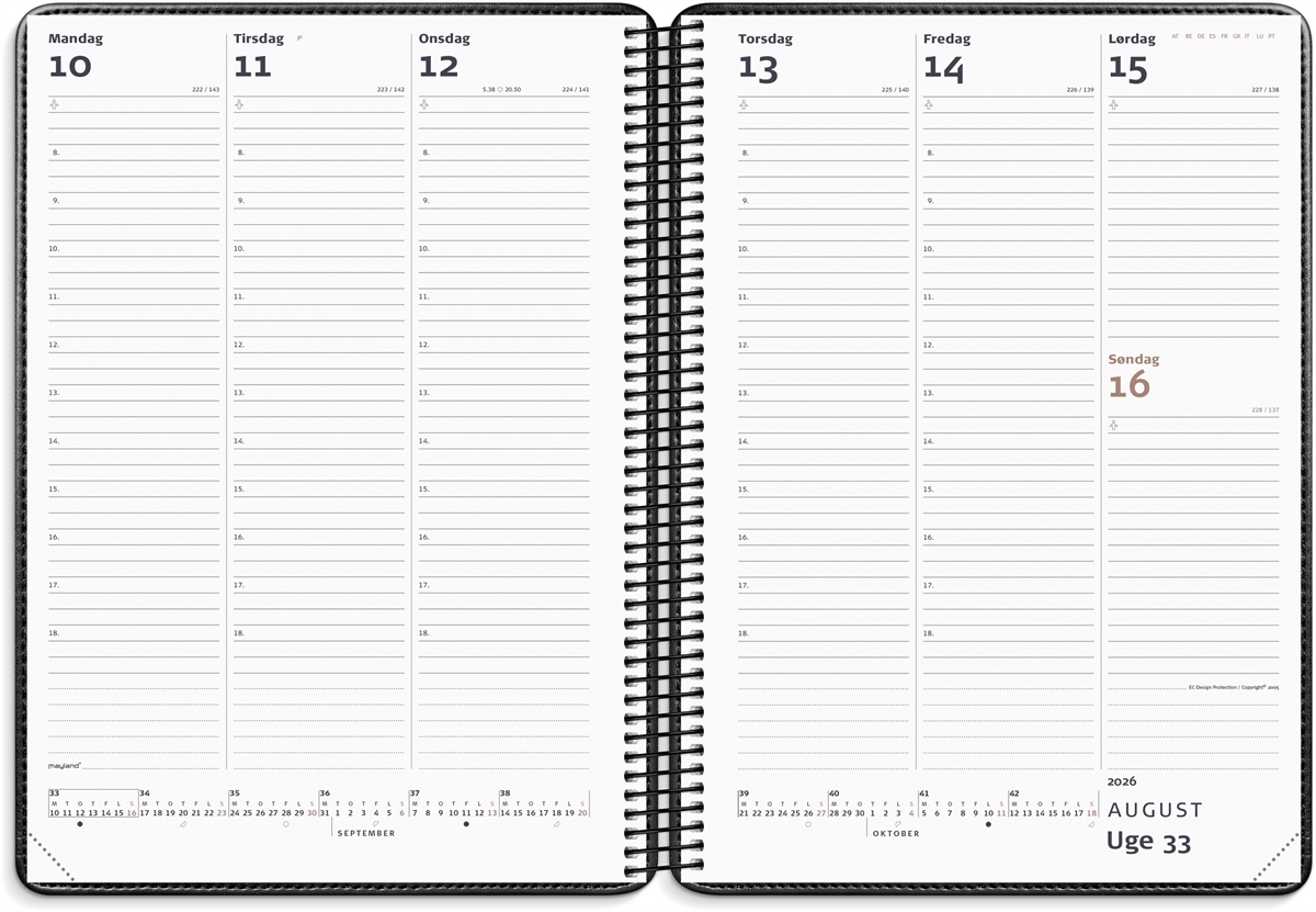 Mayland Diplomat ugekalender m/spiral sort kunstskind 2026 nr. 26194500