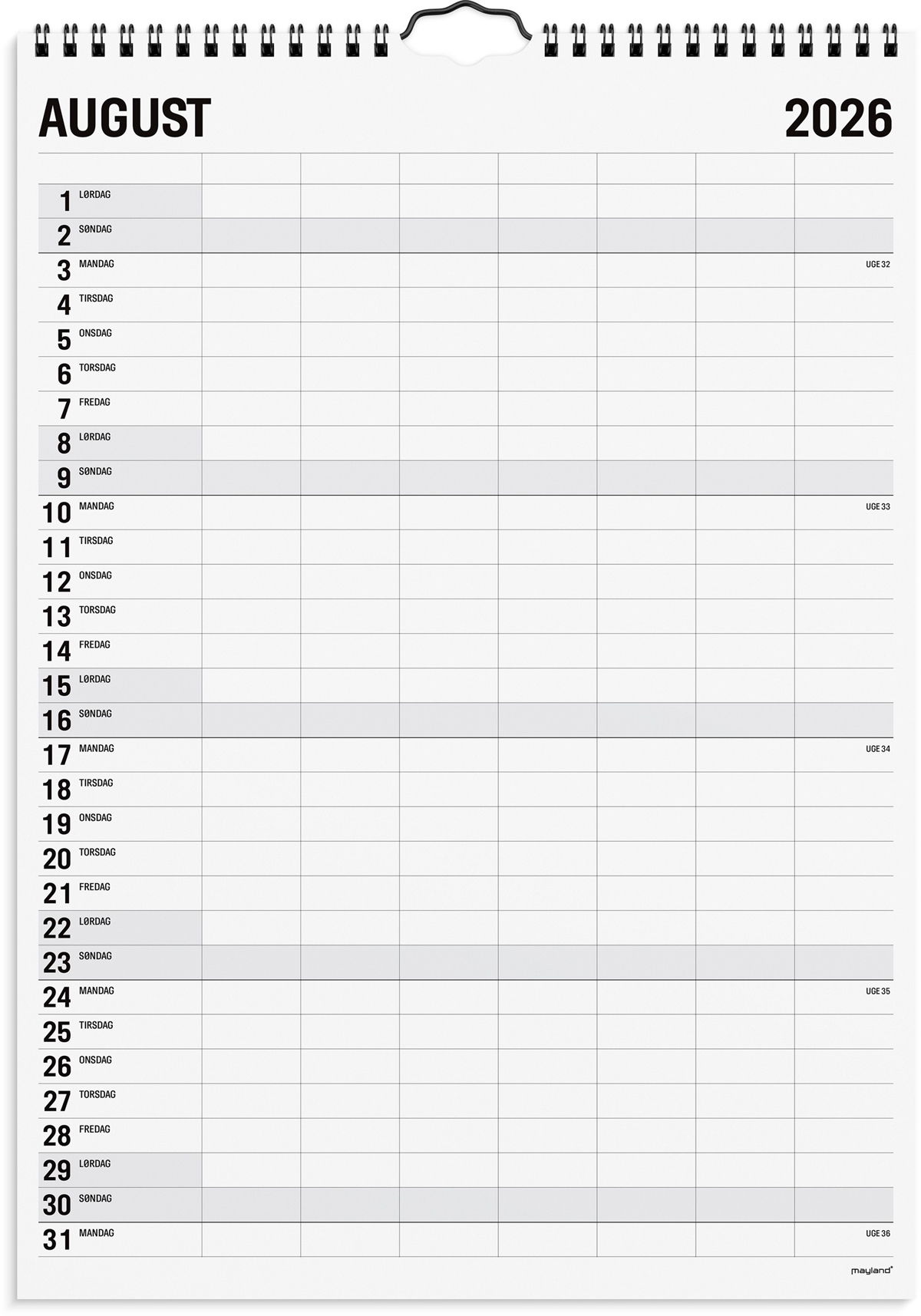 Mayland Familiekalender Black and white 7 kol. 2026 nr. 26066560