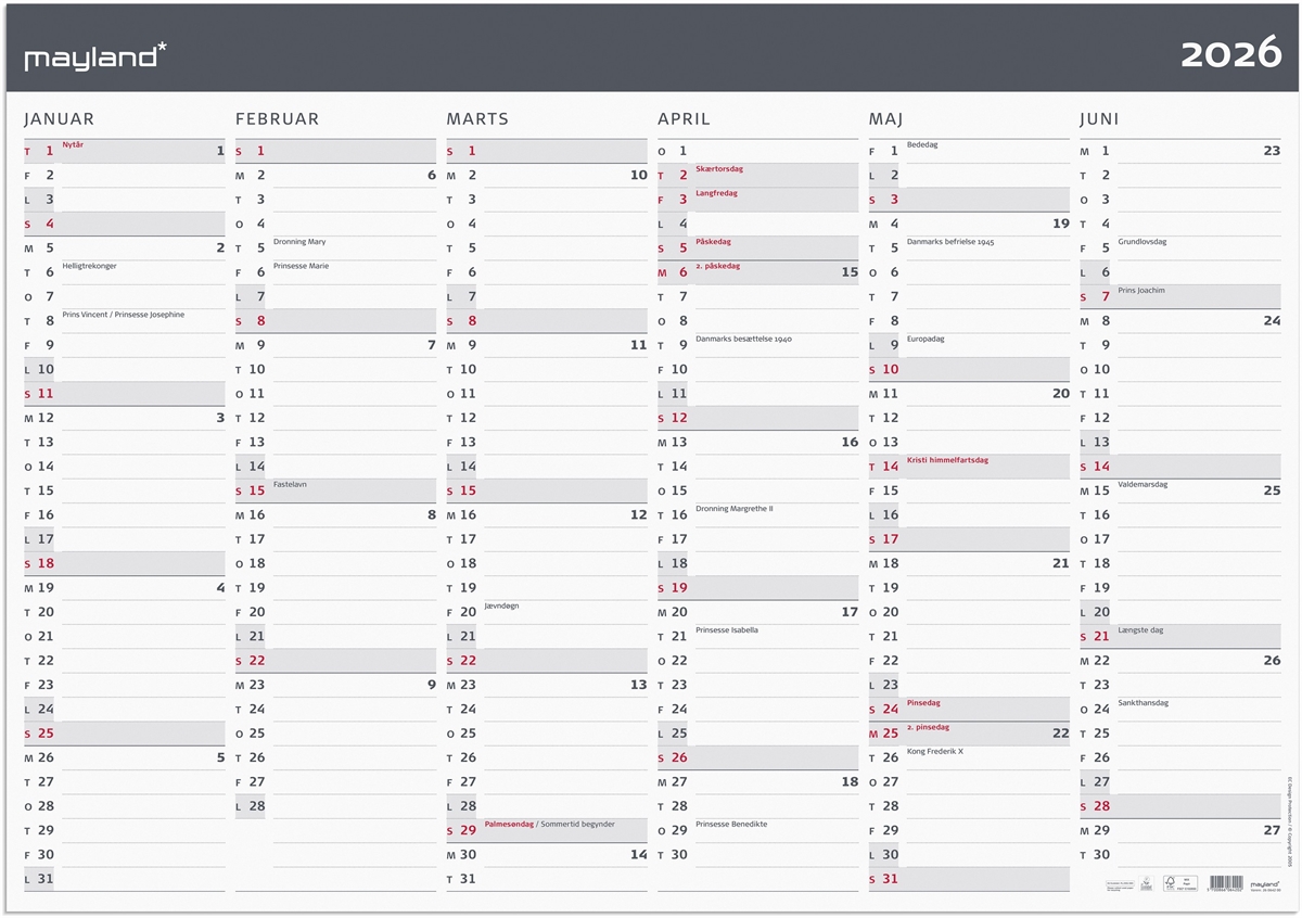 Mayland Kæmpekalender Moderne 2x6 mdr. 2026 nr. 26064200