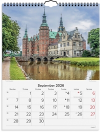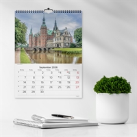 Vægkalender i karton med flotte billeder af danske slotte. Kalenderen er spiralbunden og giver dig en oversigt over 1 måned ad gangen med masser af plads til noteringer, så du hurtigt og nemt kan skabe et godt overblik over den enkelte måned.