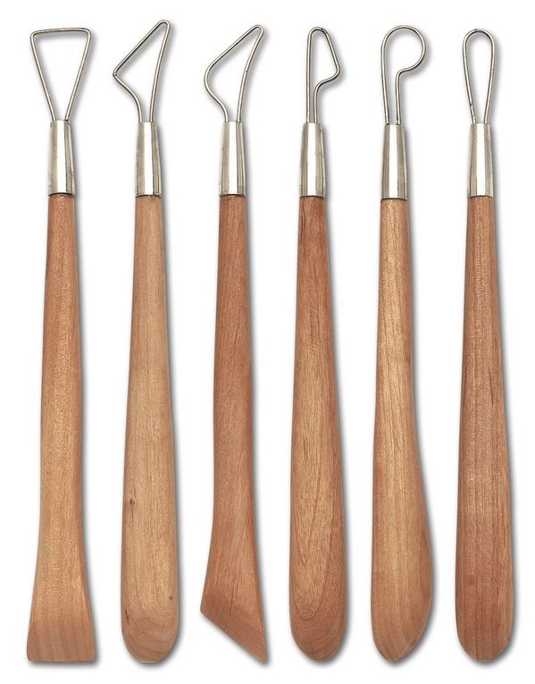 6 kombi pinde med modellerslynger af stålbånd i den anden ende indfattet i metal ring, ca. 20 - 21 cm. lange.