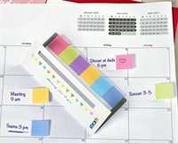 Selvklæbende papir-indeksfaner i 6 forskellige pastelfarver, der hæfter overalt igen og igen uden at beskadige underlaget.