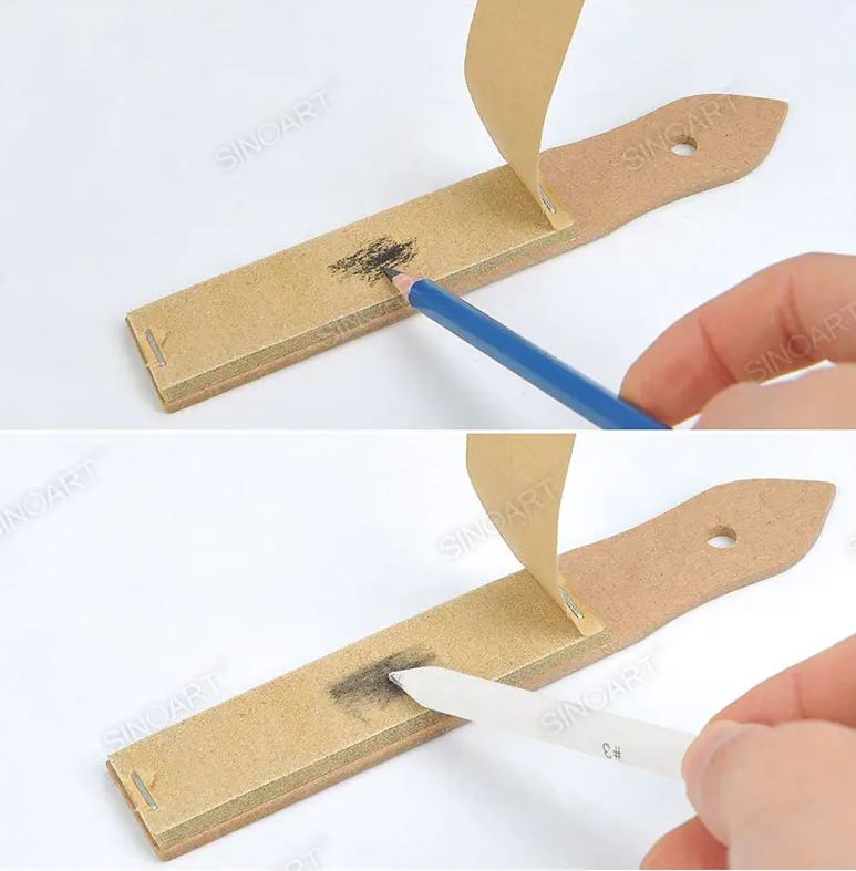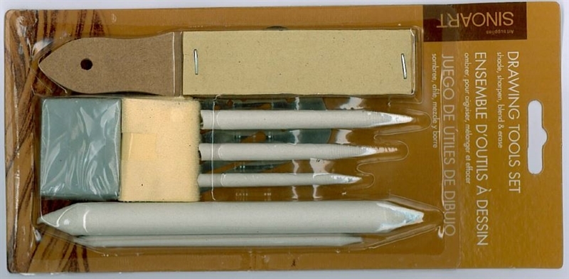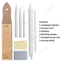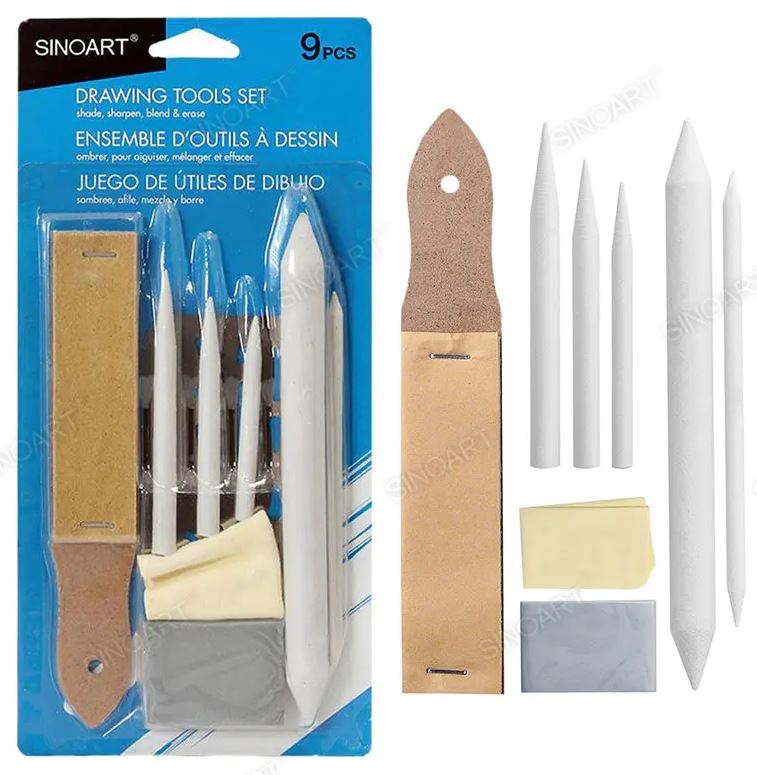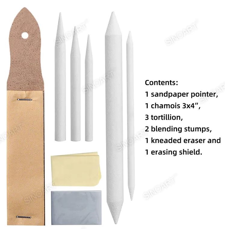 tegnesæt med stub sandpapir viskelæder viskeskjold m.m.
