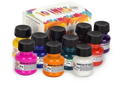 Det indiske blæksæt er beregnet til at tegne, tegne og lægge overflader på tegne- eller tegnepapir med enten en bladpen eller stylograf, airbrush eller pensel.