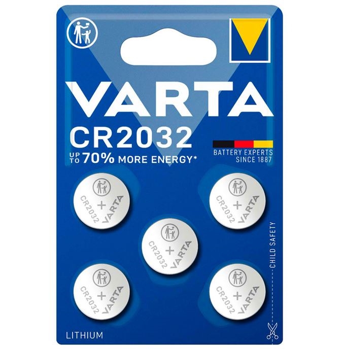 Det meget brugte CR2032 knapcellebatteri, der fx bruges i elektroniske apparater som bilnøgler, køkkenvægte, fjernbetjeninger, ure og meget mere.